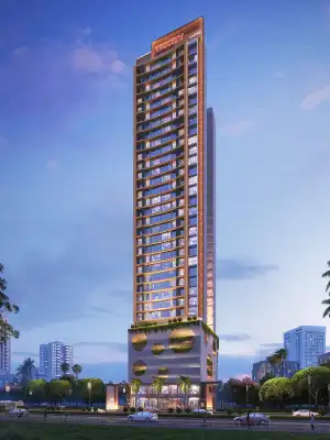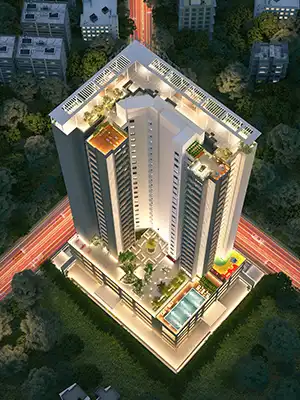 G+30 storey ostentatious twin tower in Kharghar has 2BHK, 2BHK Terr., 3BHK apartments, 2 level of car parking and variety of amenities at podium level.
