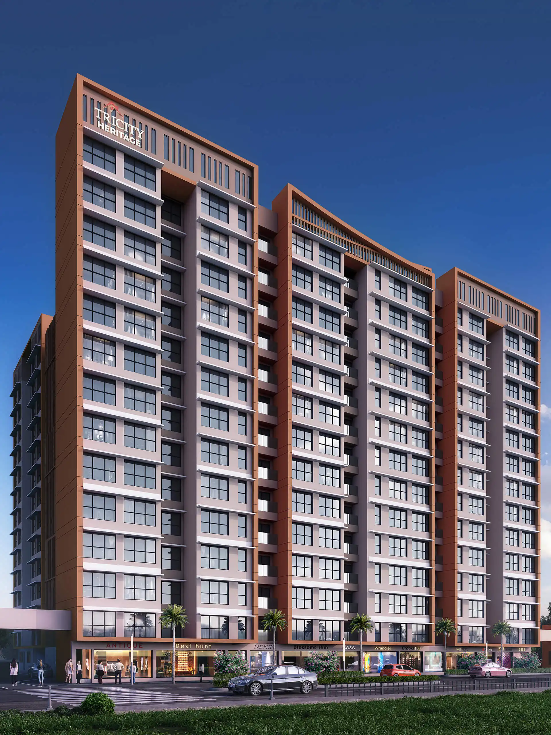 Tricity Heritage, is one of the high-rise tower in sector 21, near panvel railway station offering 1 and 2 BHK apartments along with shops. With excellent connectivity and top-notch amenitie
